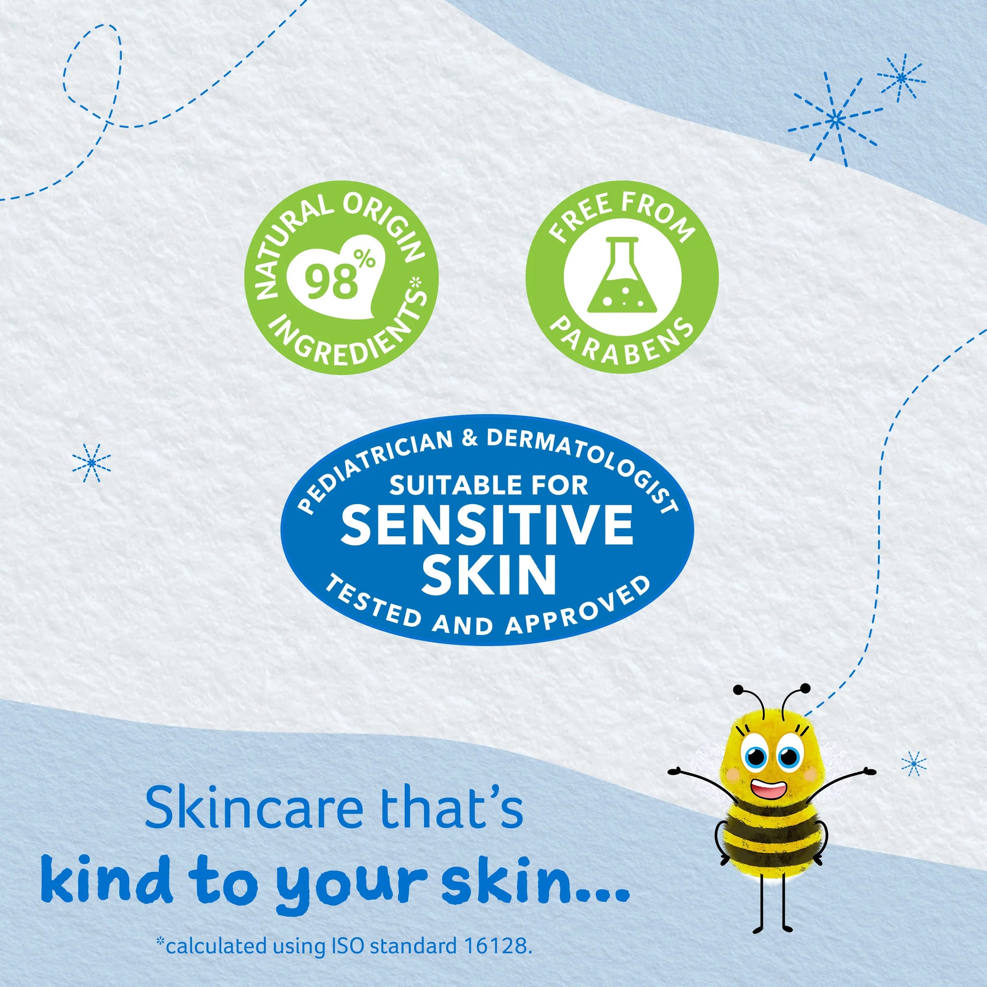 Each of our bottles is lovingly packed with the best ingredients to nourish your little one’s delicate skin. We’re here to care for your little one’s skin and to be kind to the planet so, not only are our key ingredients naturally derived, they’re also responsibly sourced.