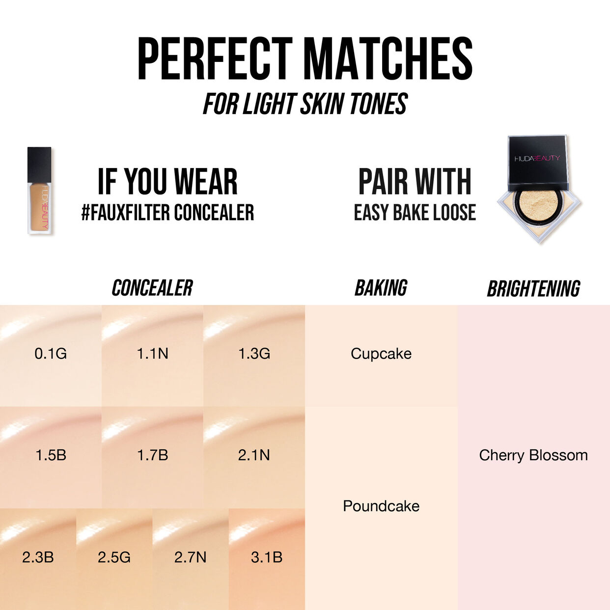 The Huda Beauty Easy Bake Loose Powders are inspired by Huda’s strong belief that the technique of baking is a key step to a flawless finish while ensuring long-lasting, melt-proof makeup. This extremely light and silky texture blends seamlessly into the skin leaving it matte with a hint of sheen, for a luminous finish that controls shine throughout the day. The powders work to subtly color correct and highlight different contours of the face, leaving a translucent veil of color on your skin.